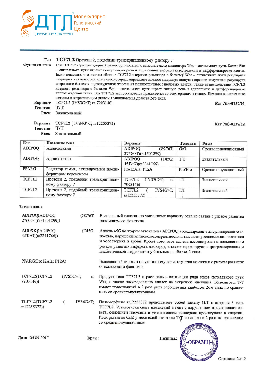ДНК тест на предрасположенность к сахарному диабету 2 типа